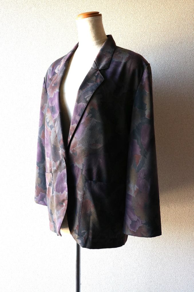 パープルで落ち着いたトーンの花柄ジャケット。