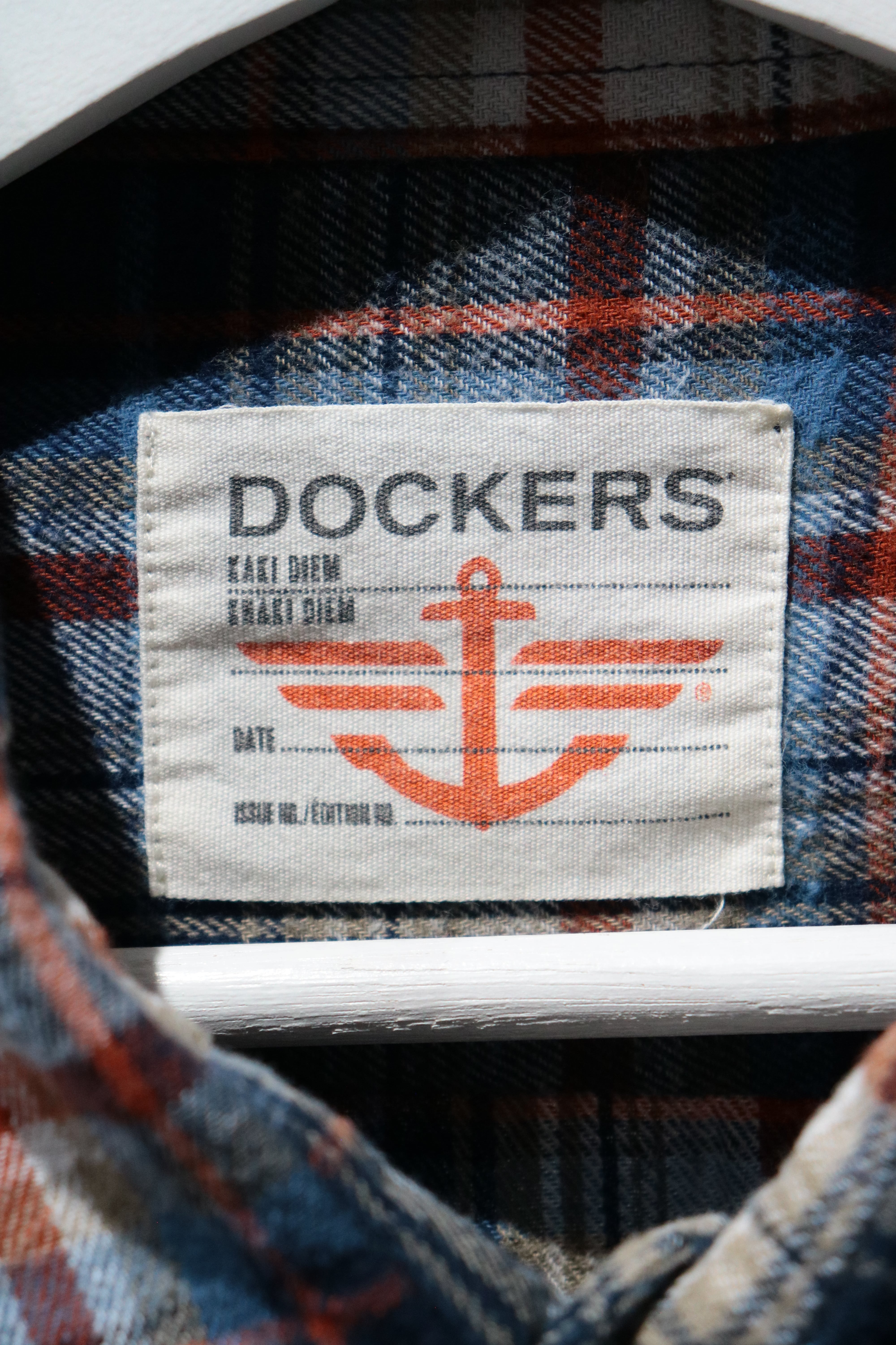 青をベースに、オレンジやベージュカラーが混ざった綺麗なチェック柄です。