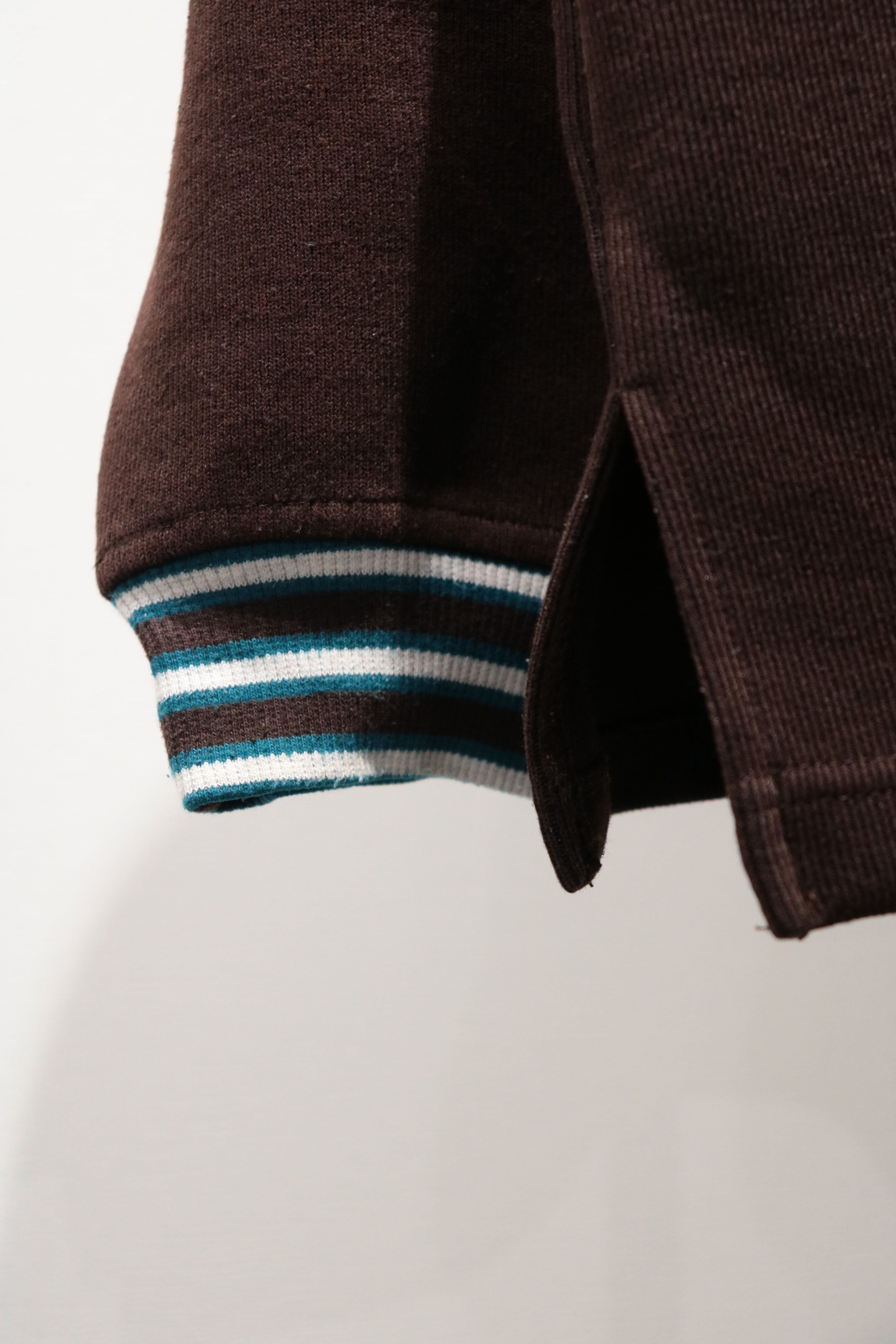 両脇の裾には小さめのスリット入り、3色を使ったボーダーリブもいいアクセントになっています。