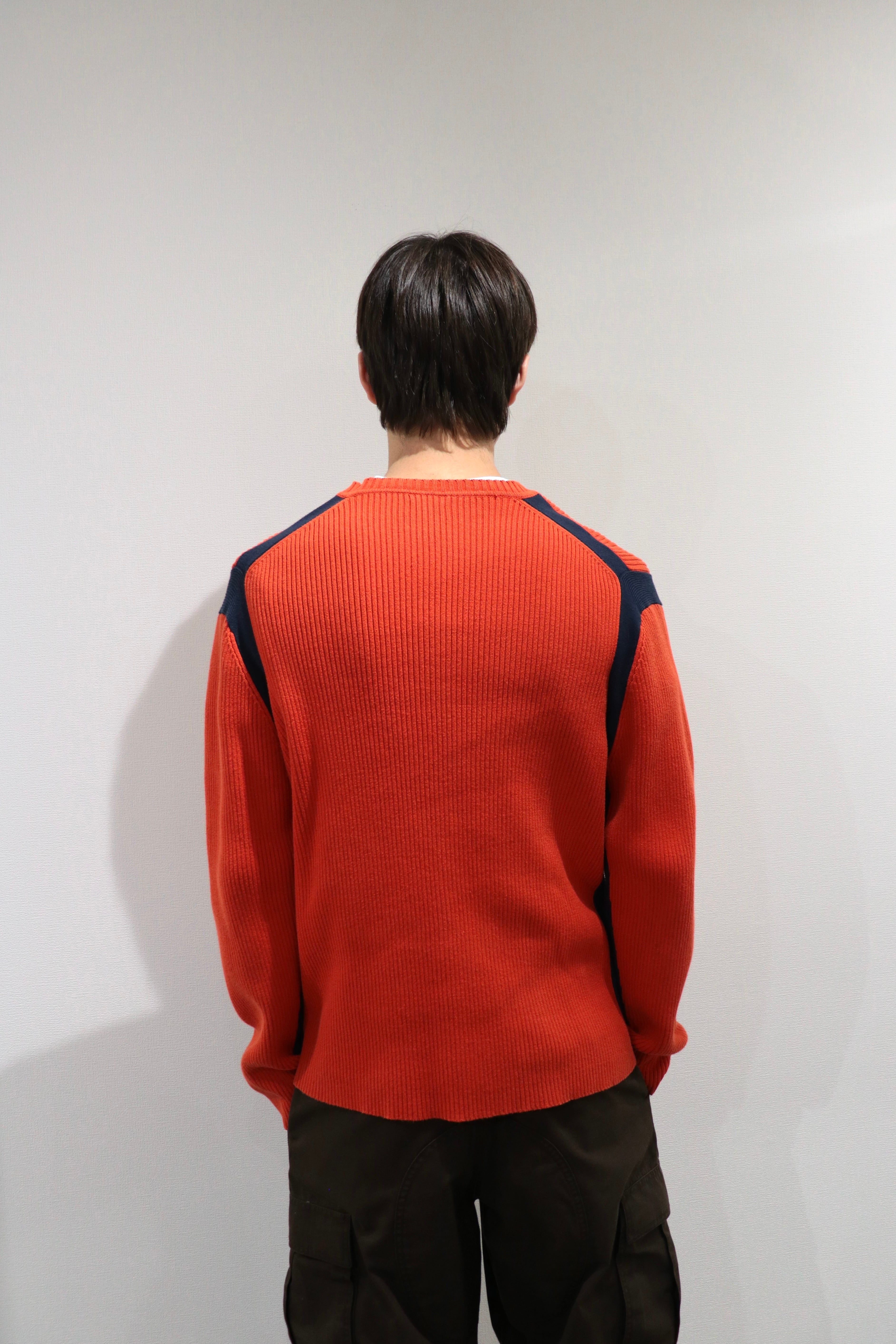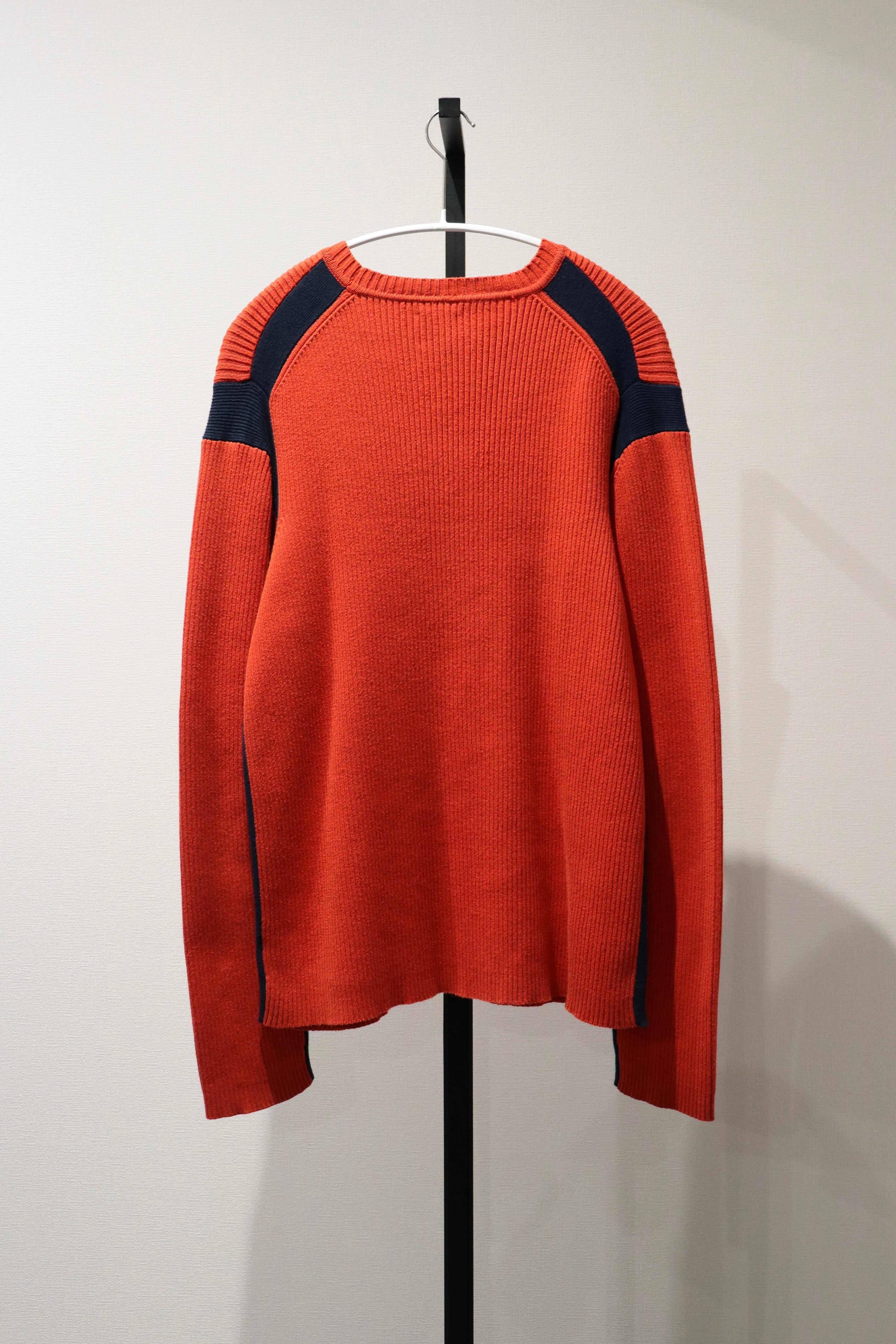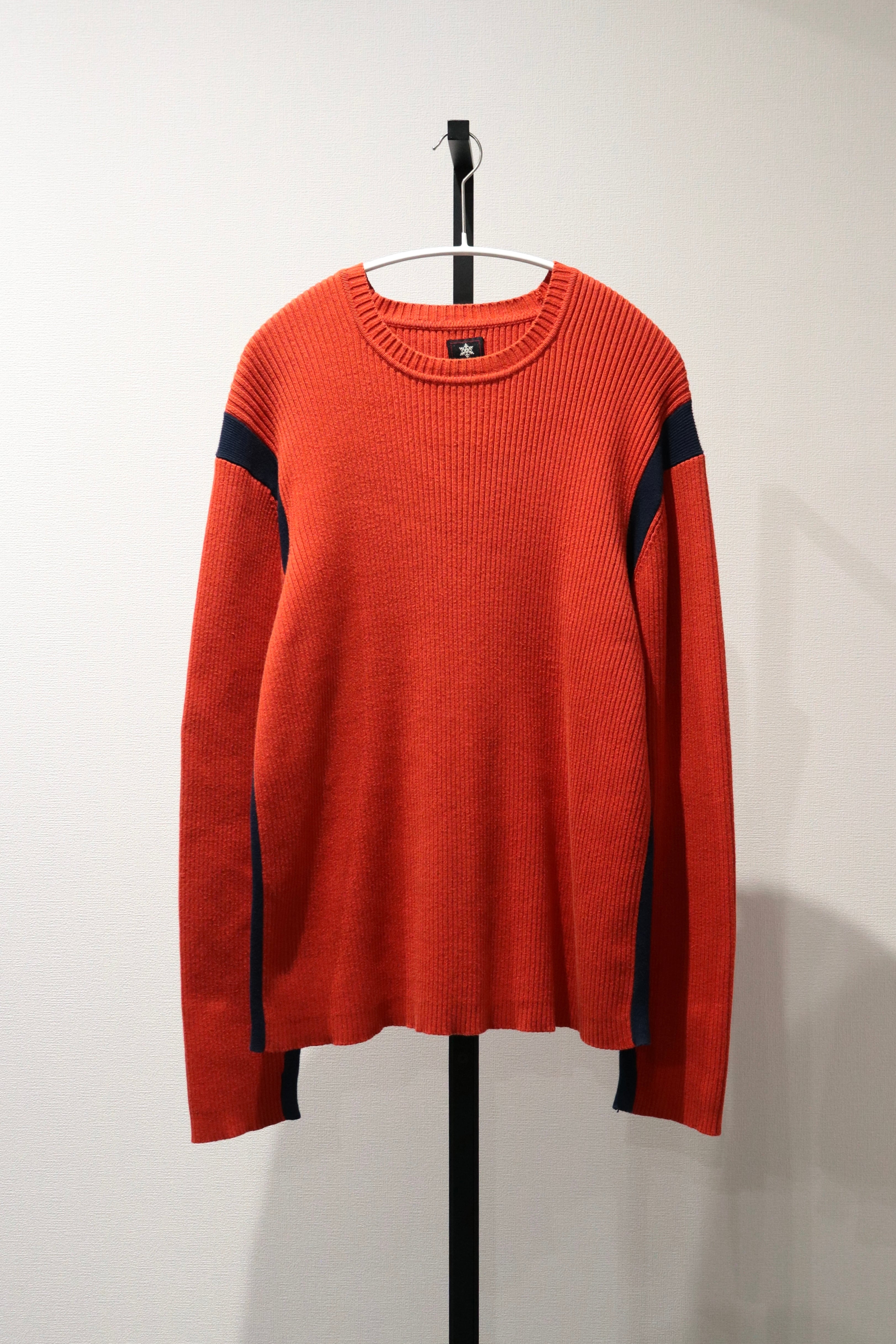 Roots orange×navy line design cotton knit sweater