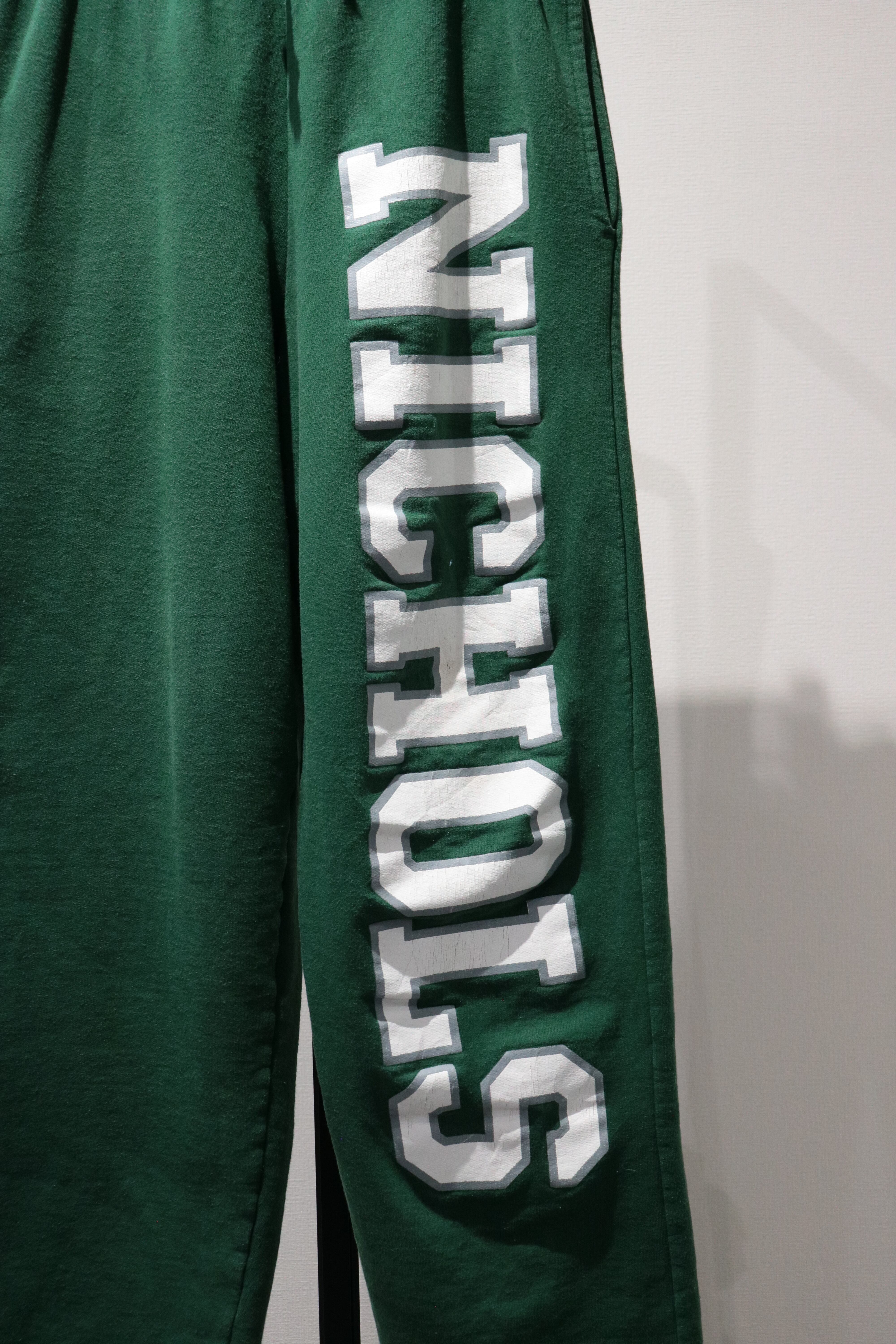 「NICHOLS」の縦プリントがインパクトのあるスウェットパンツ。