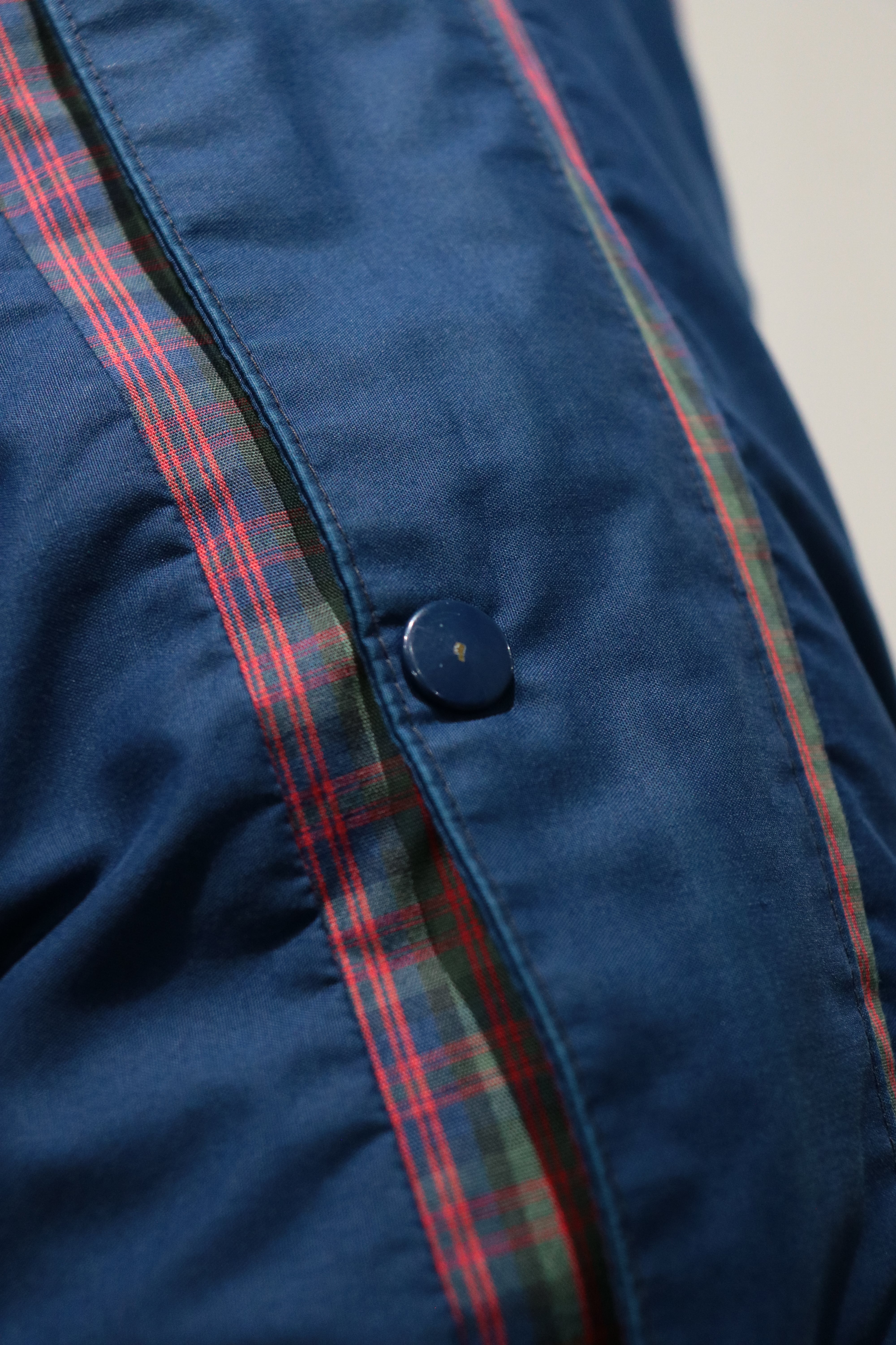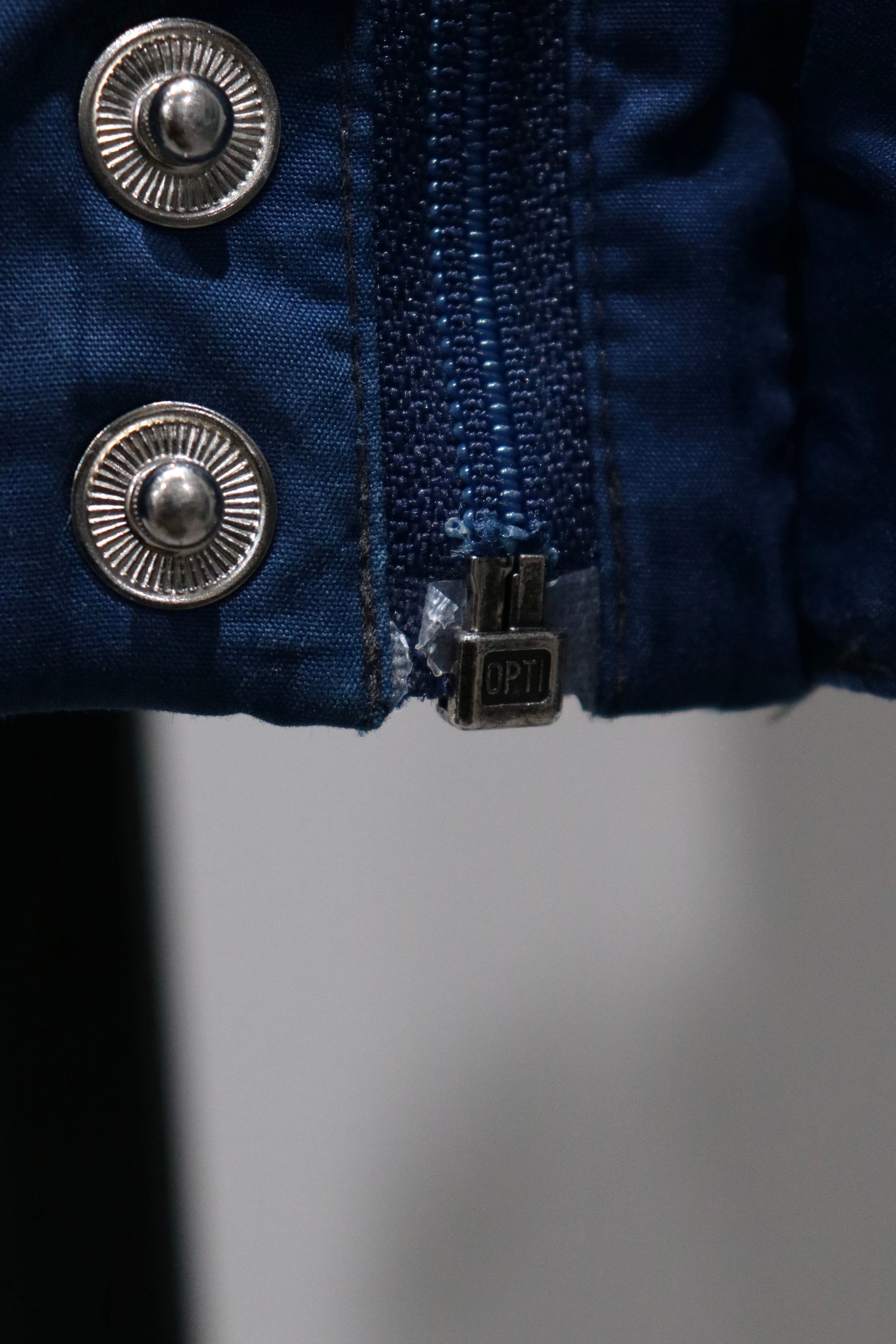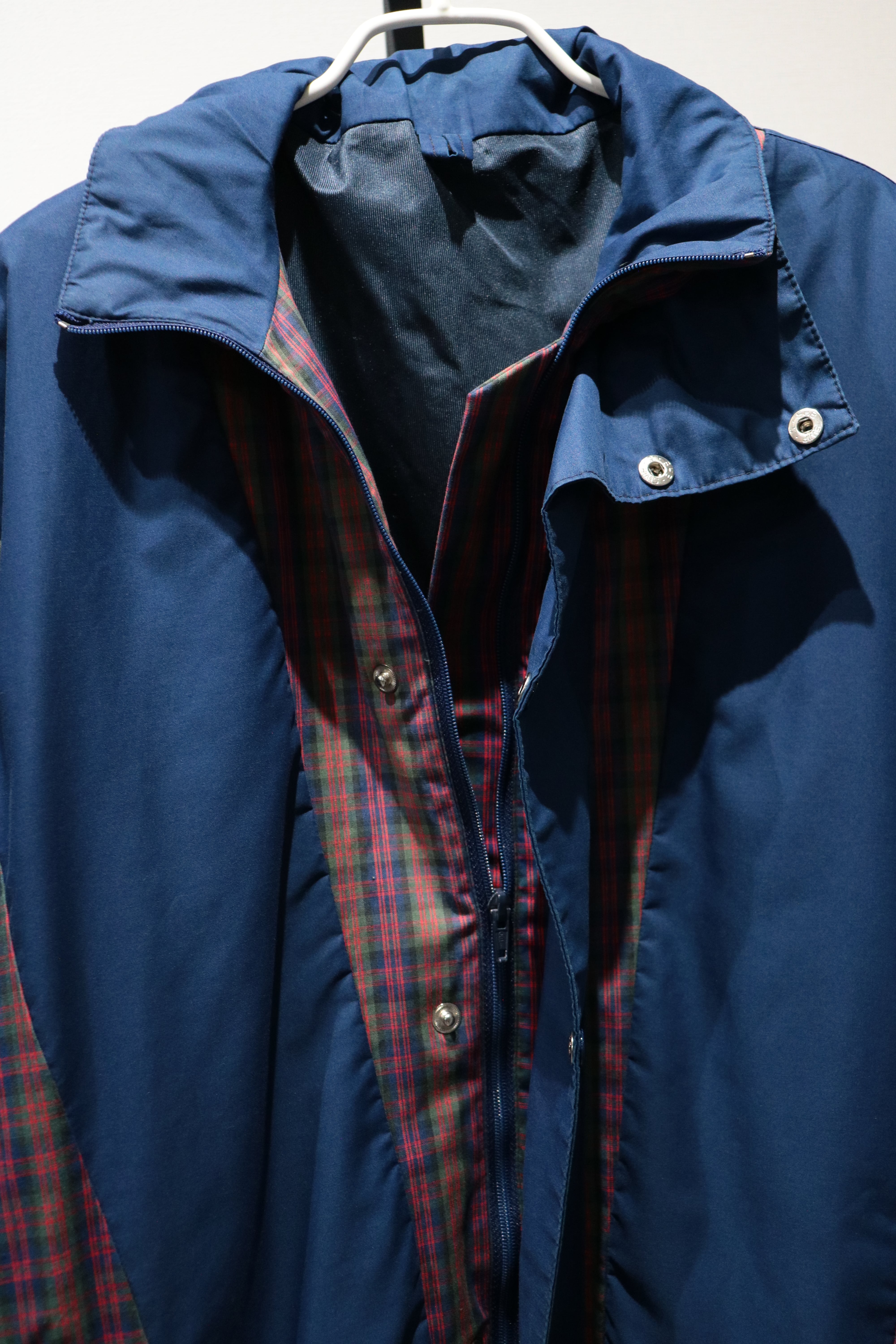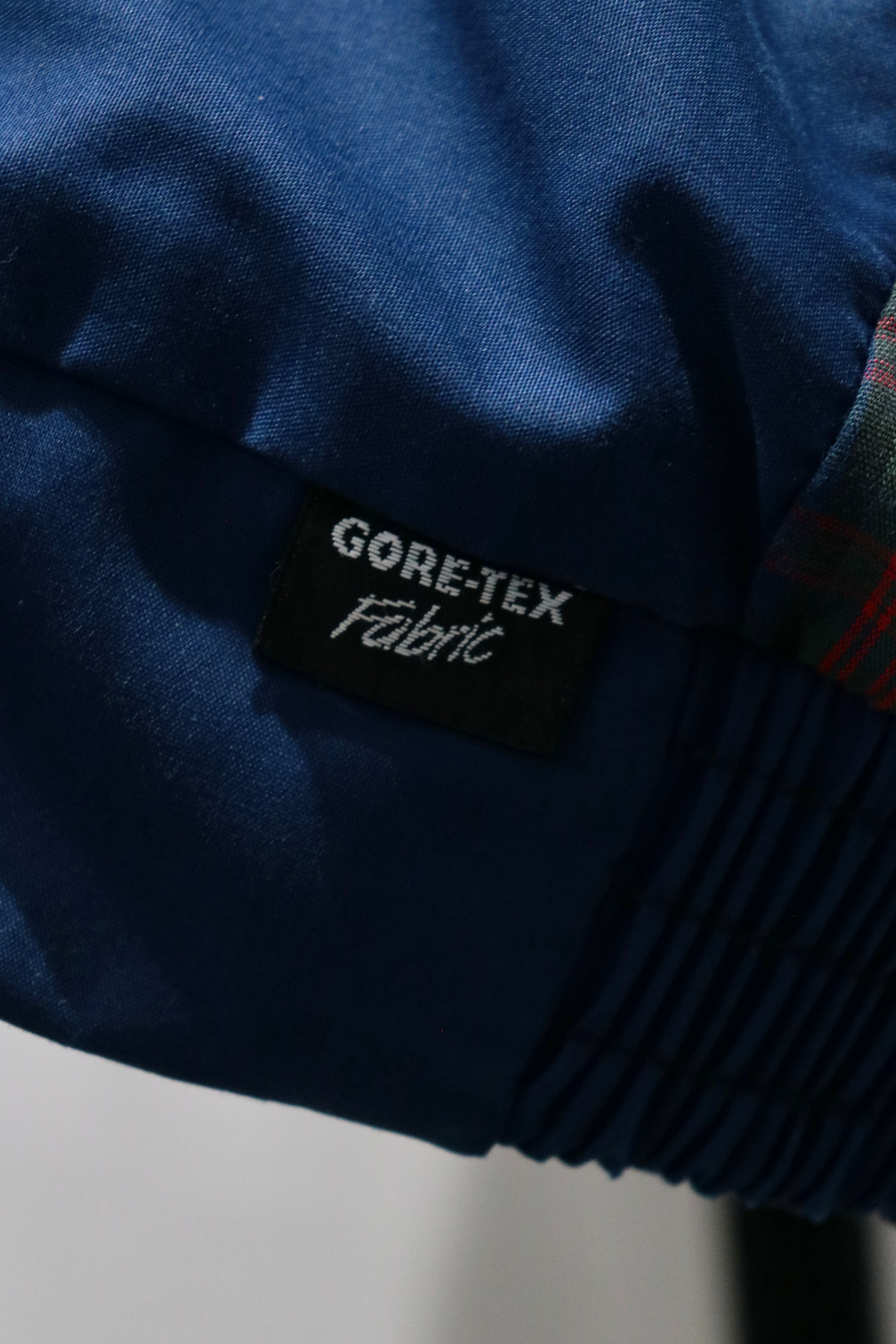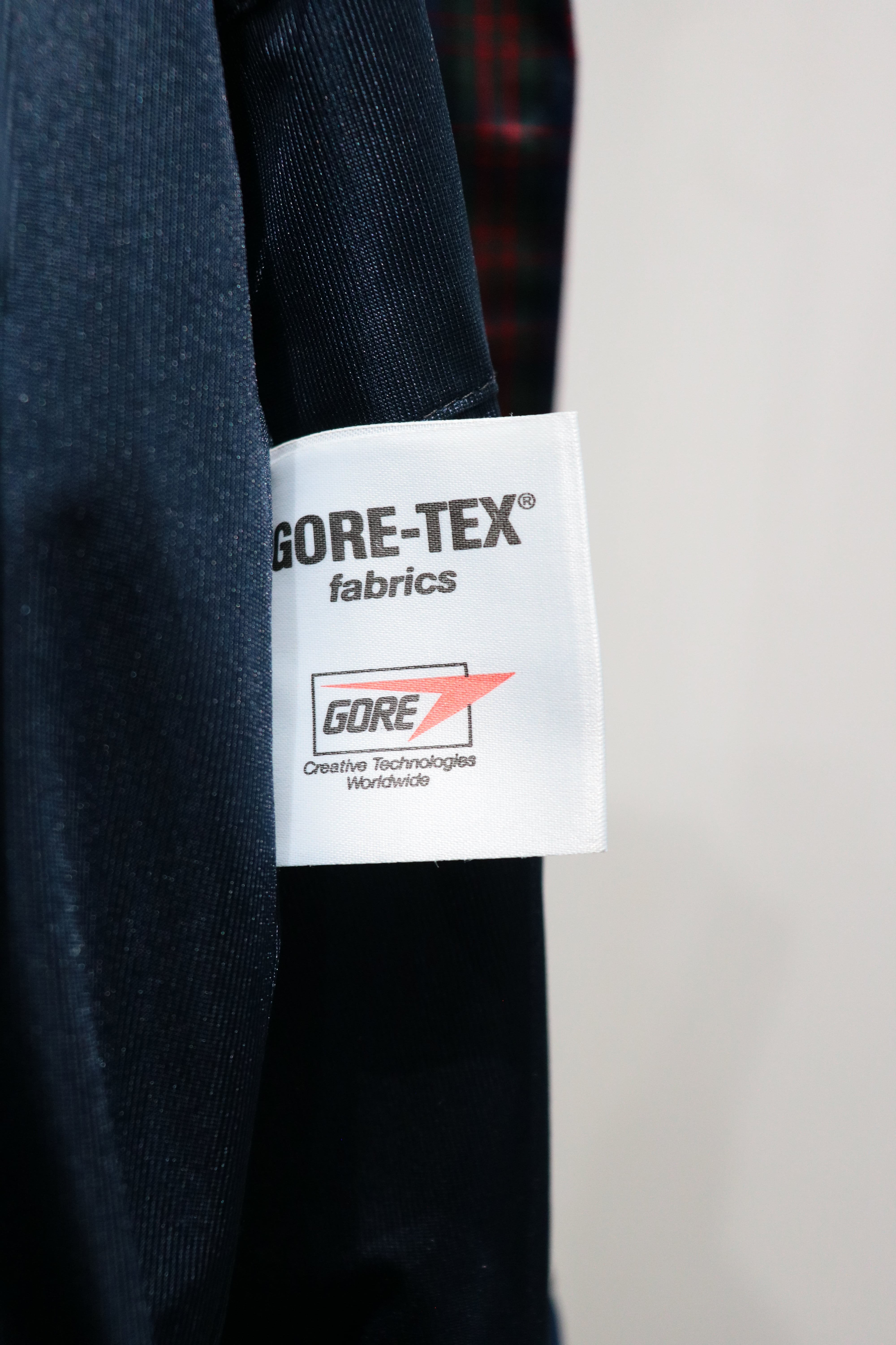 前開きがスナップボタンの比翼仕様、ハイネックで素材はゴアテックス、機能性とデザインをうまく組み合わせたアイテムです。