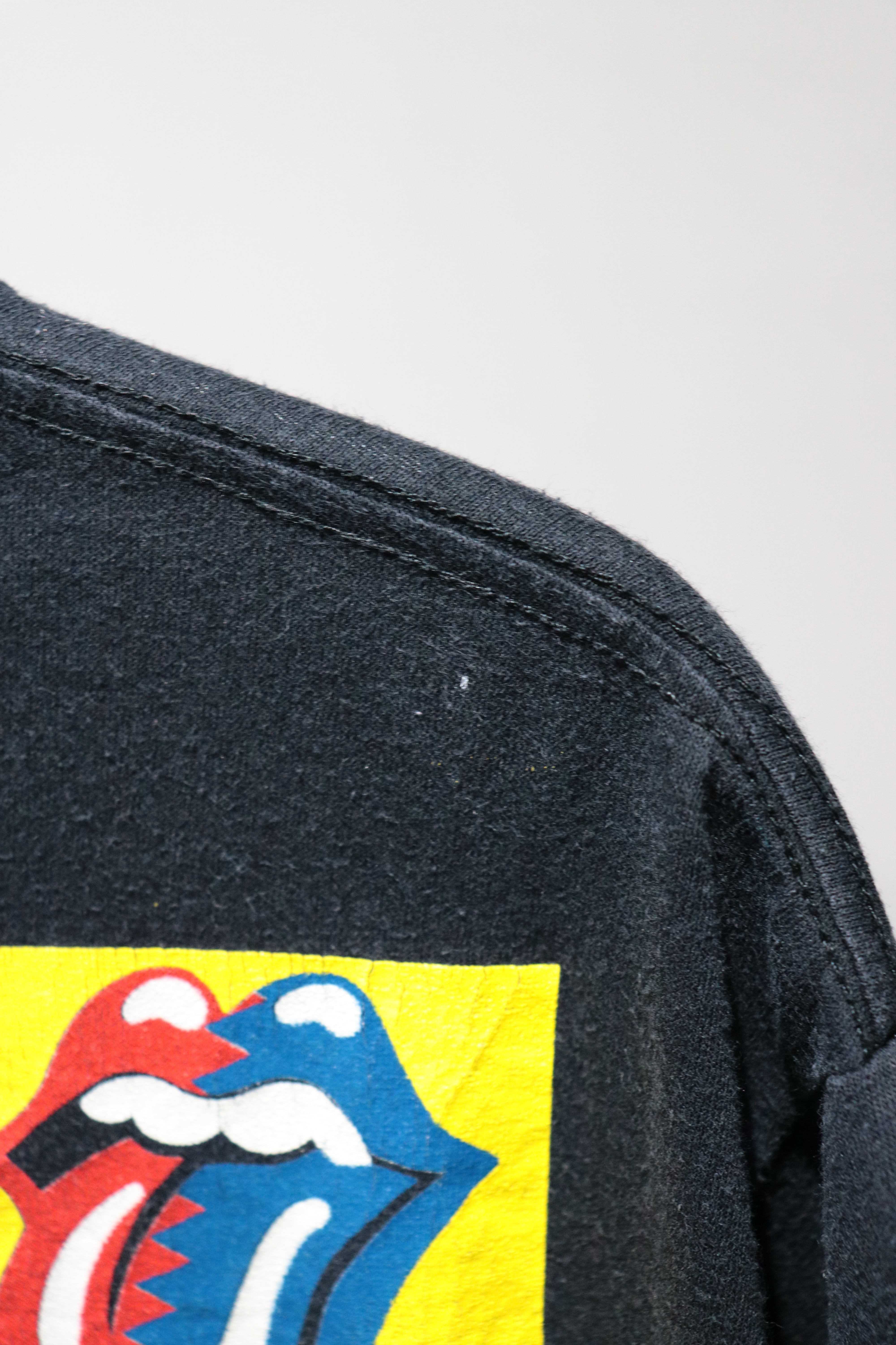 お馴染みのベロロゴに、背中にはツアーで回った都市がプリントされています。プリントの割れ感が雰囲気のある一枚です。袖口、裾はシングルステッチ。