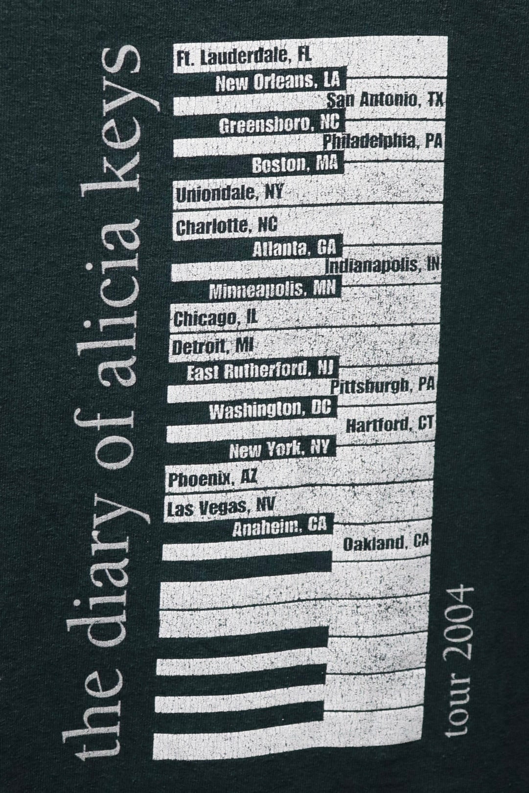 アメリカのシンガーソングライター「Alicia Keys」のセカンドアルバム「The Diary of Alicia Keys」。リリース後の2004年に全米ツアーを行った際のプリントTシャツです。