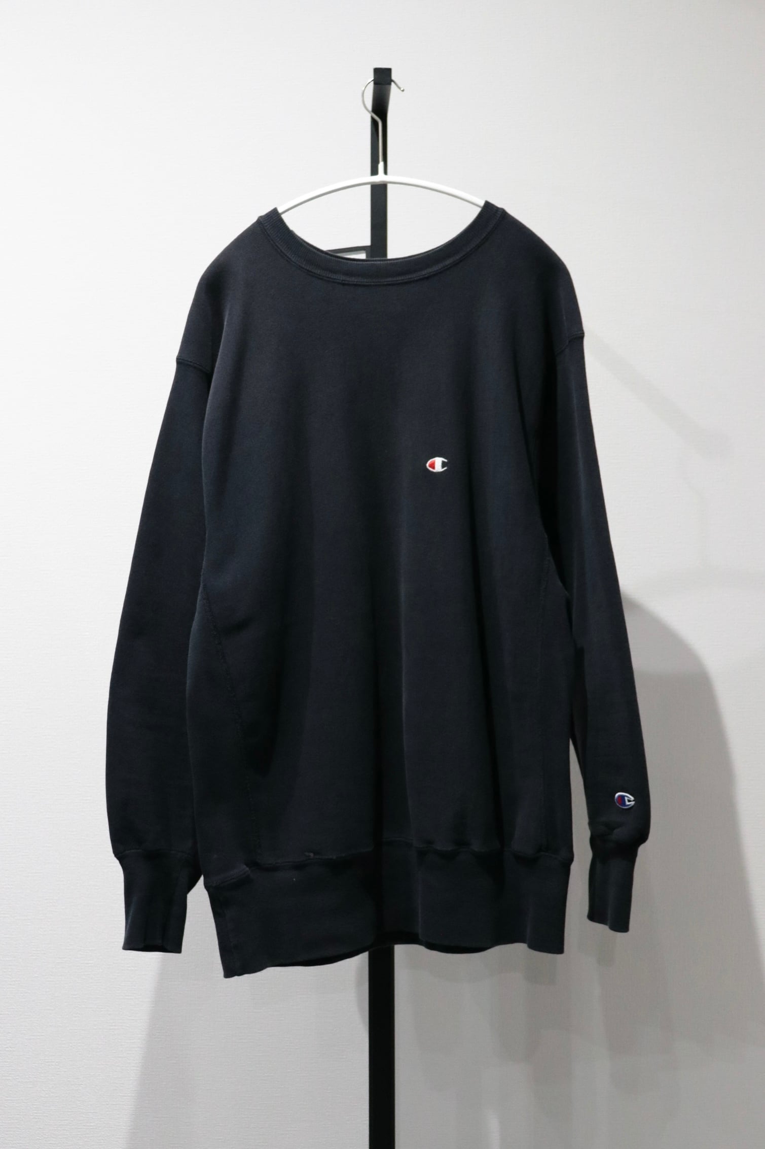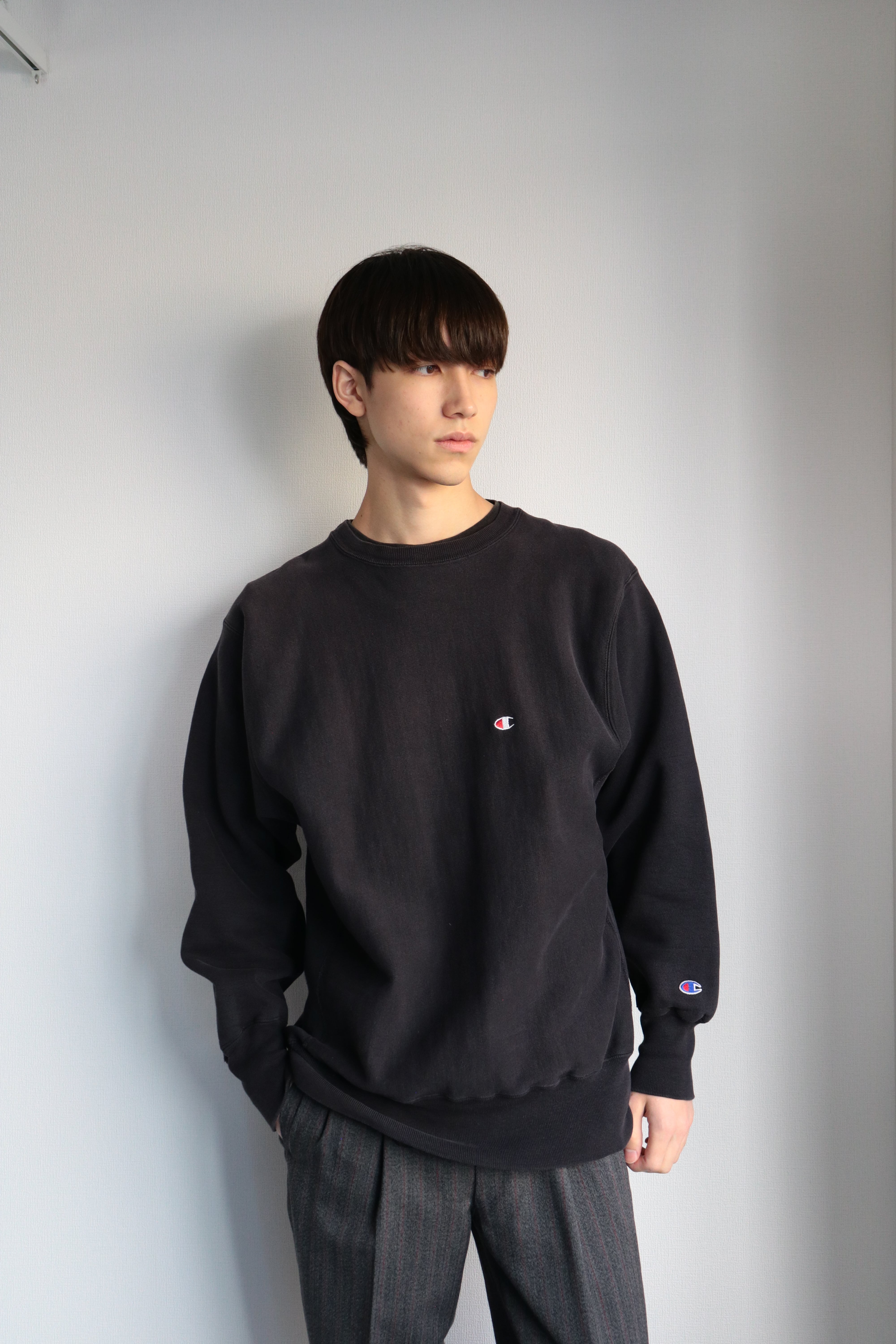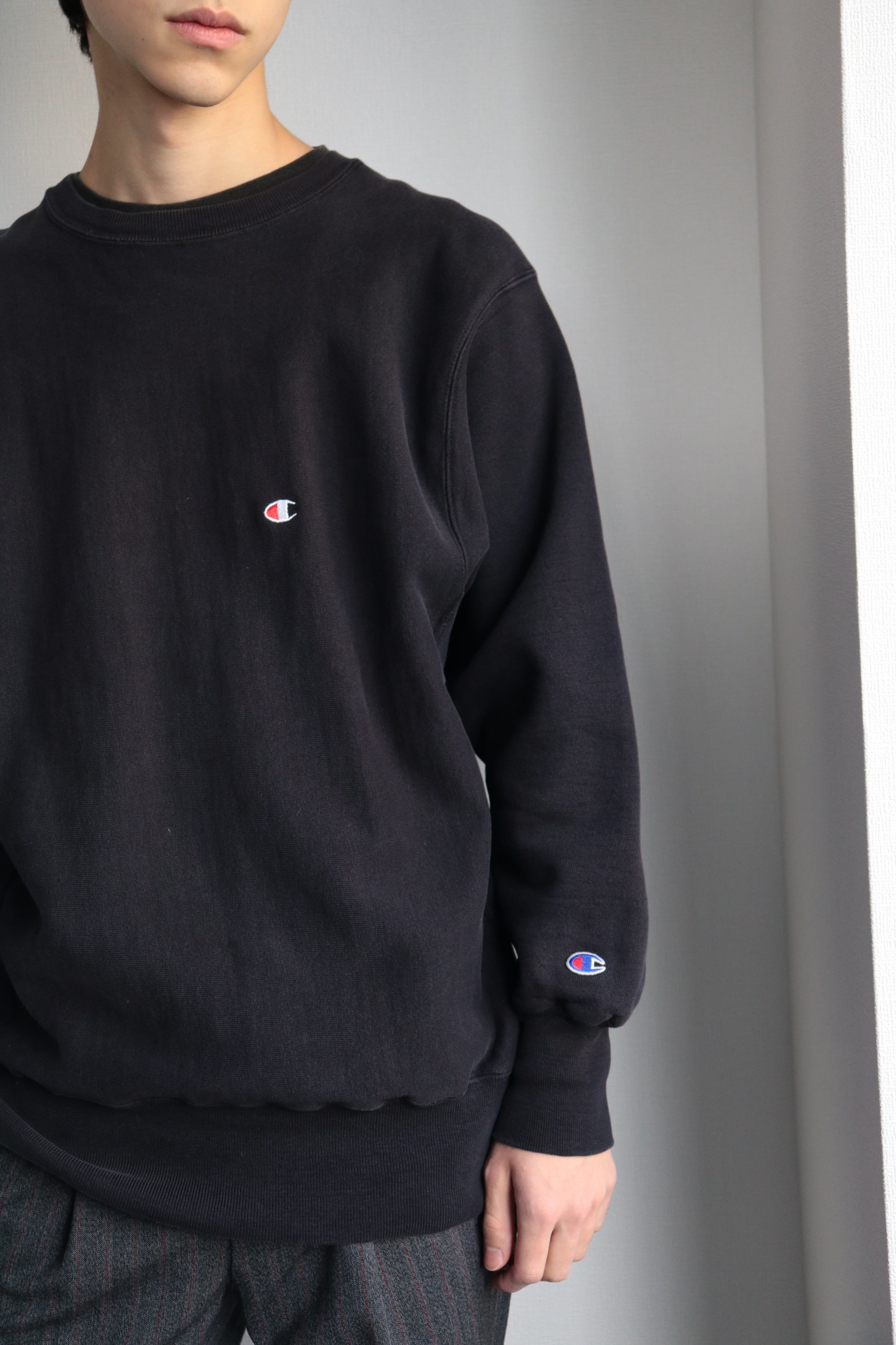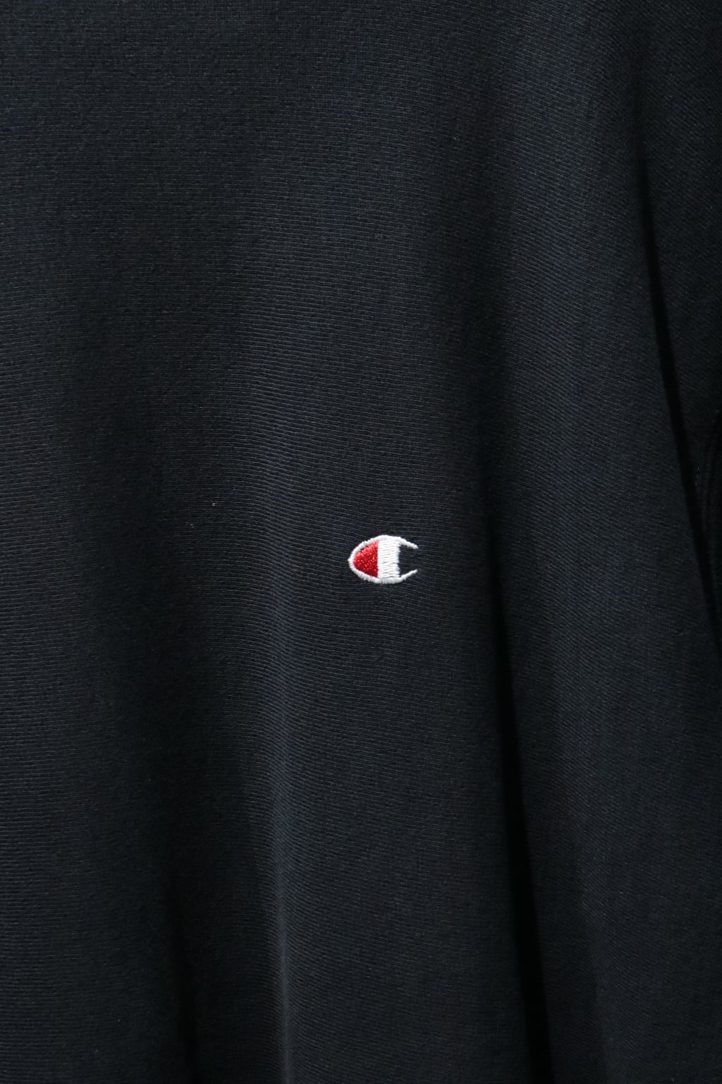 チャンピオンのリバースウィーブ。左胸と左袖口にはロゴのワンポイント刺繍、カラーは黒です。