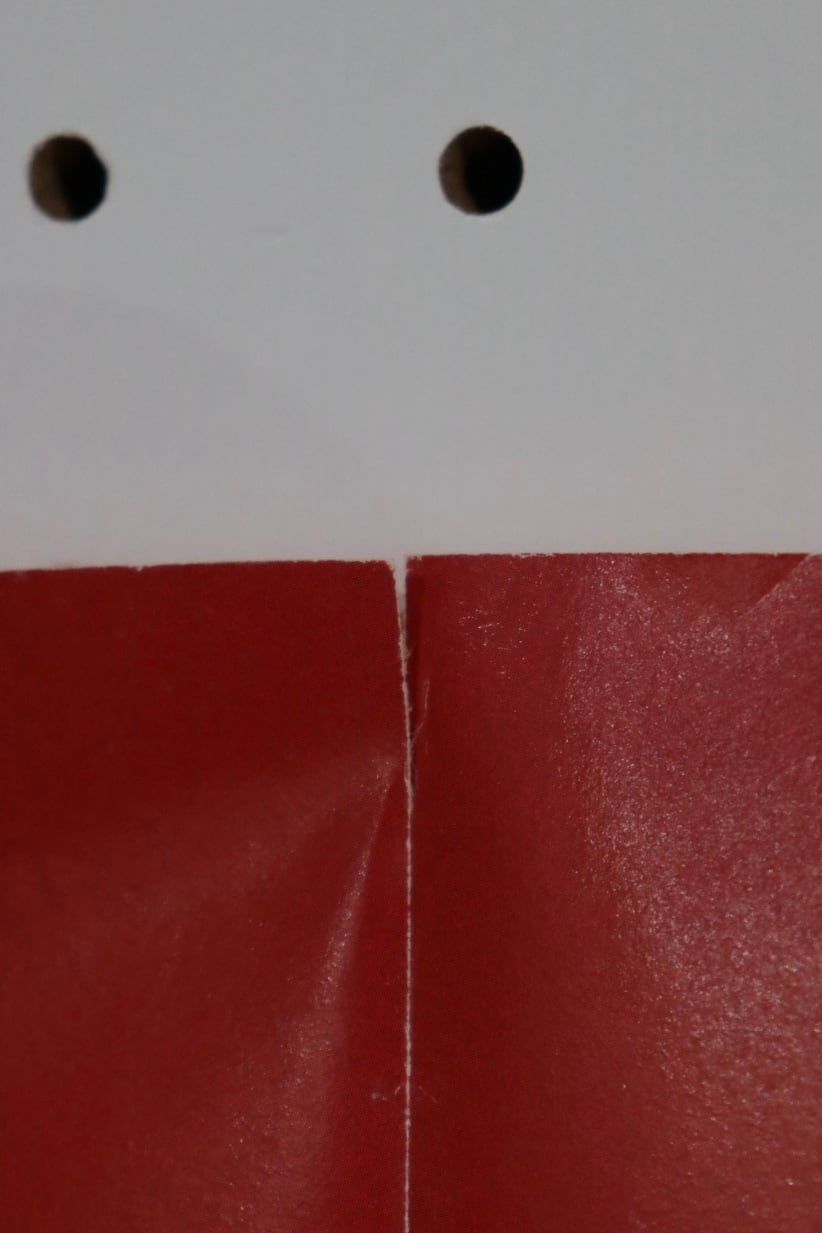 折りジワと、折りジワ部分に小さな破れが見られます。
