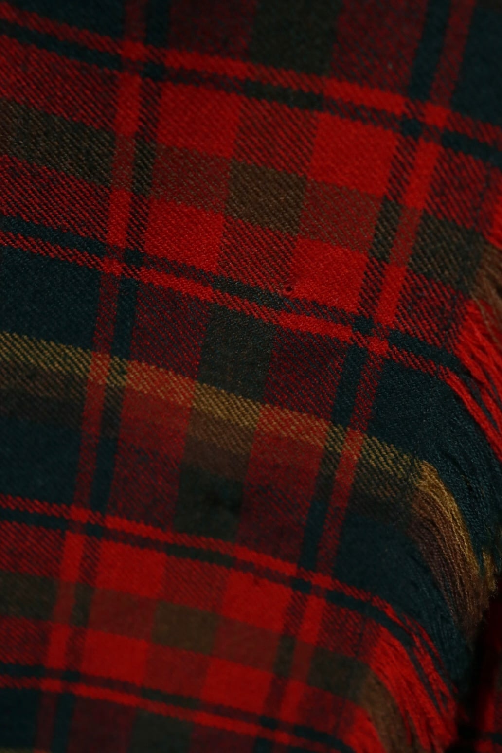素材の端部分、フリンジっぽいところがちょっとしたアクセントでオシャレ。上質なウール素材で仕立てられていて、高級感があります。