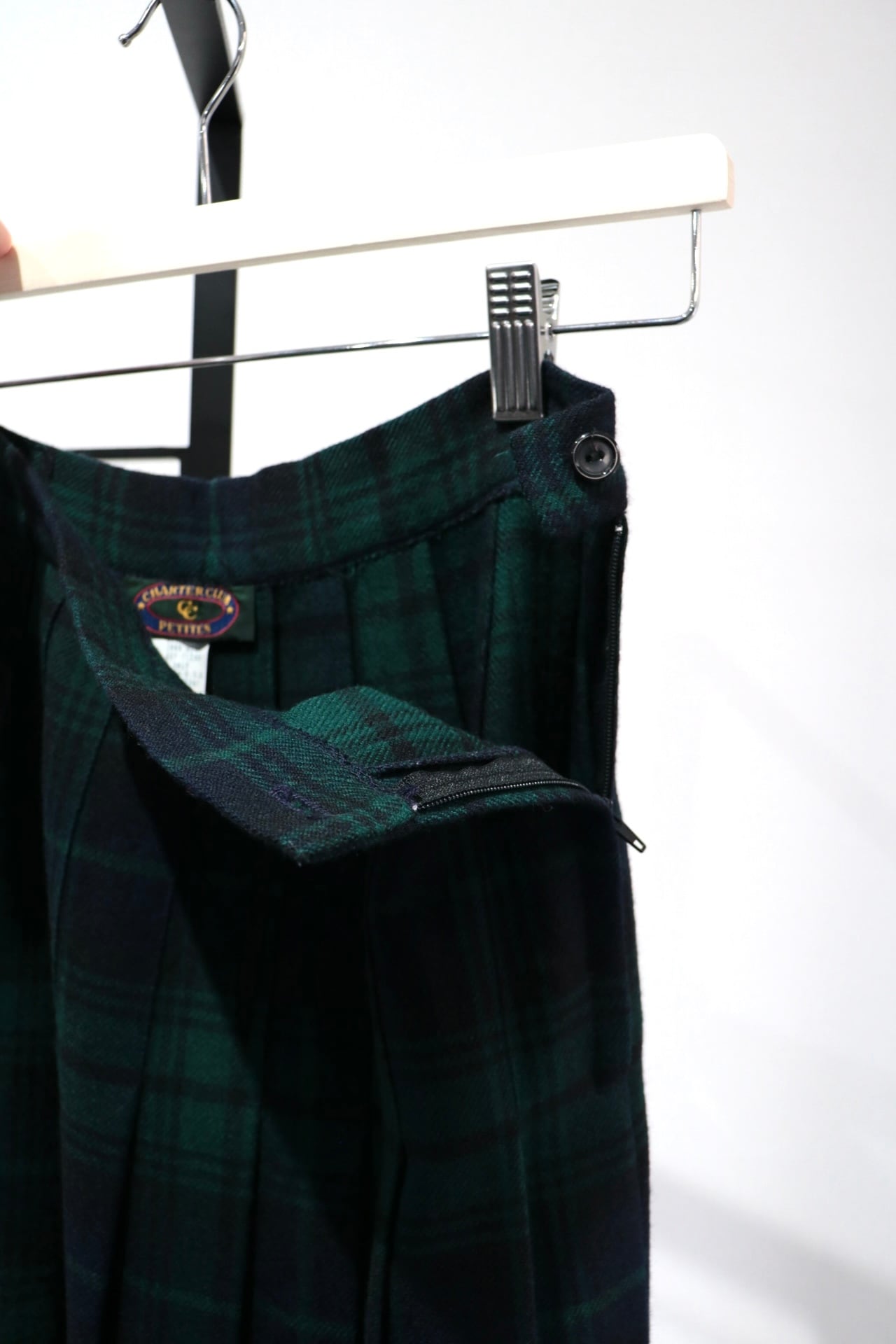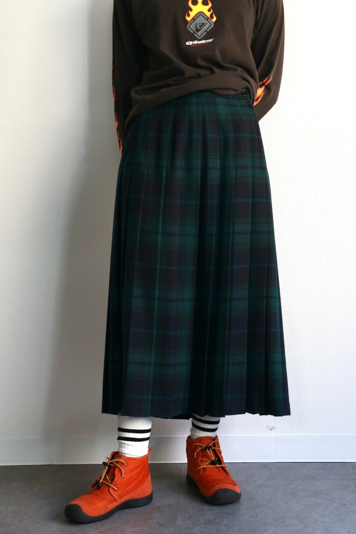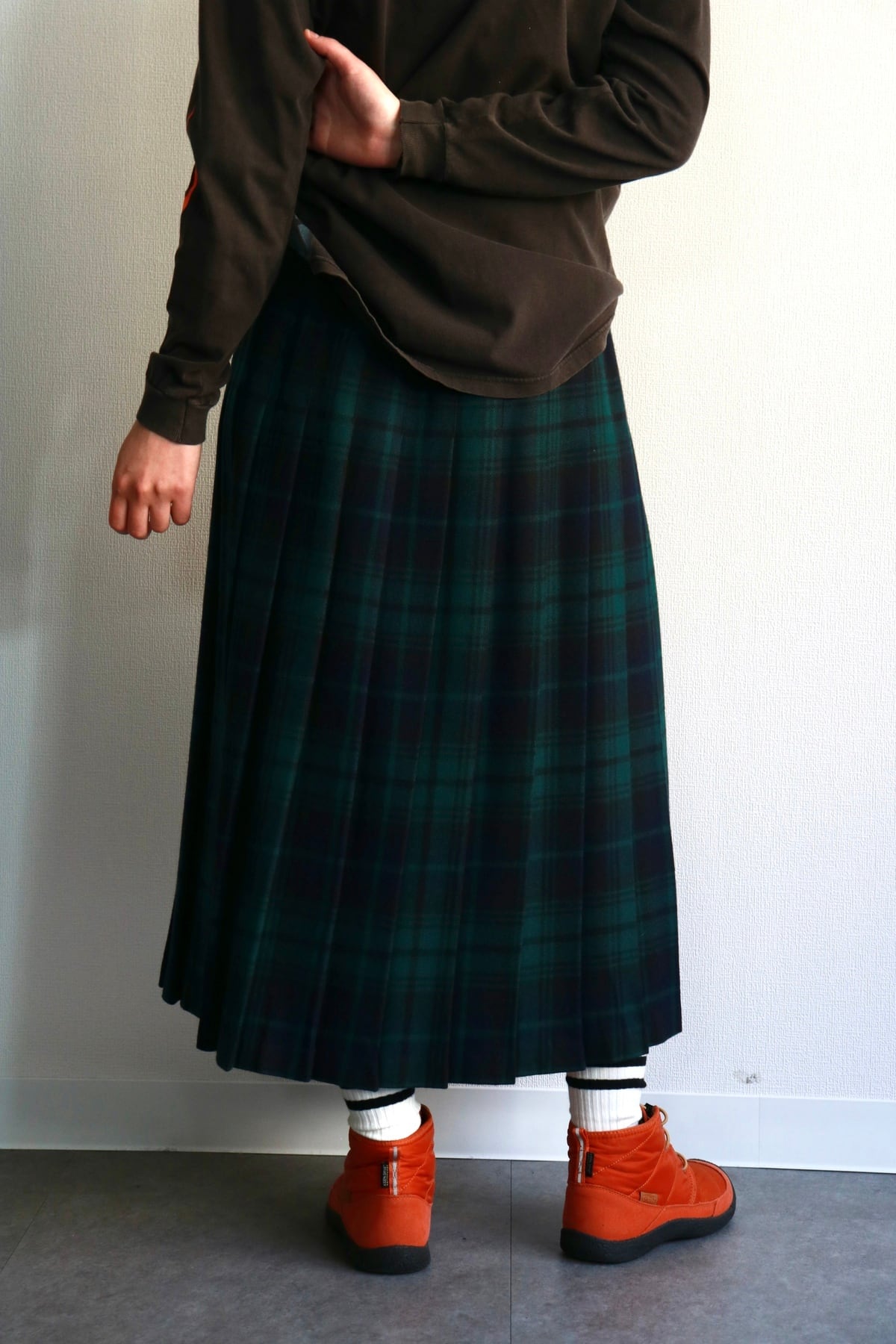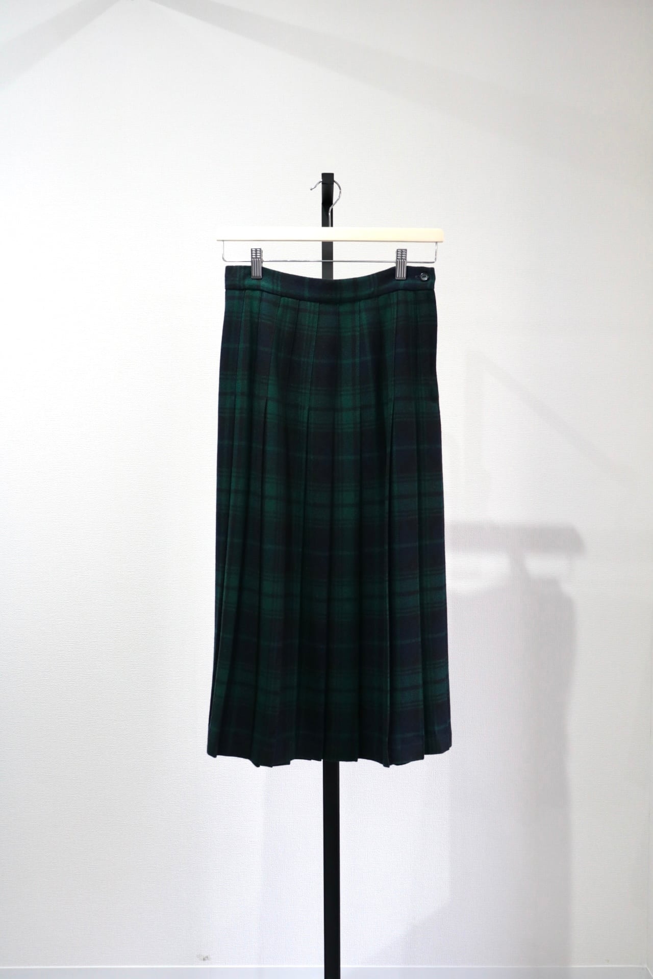 落ち着いたブラックウォッチパターンのプリーツスカート。