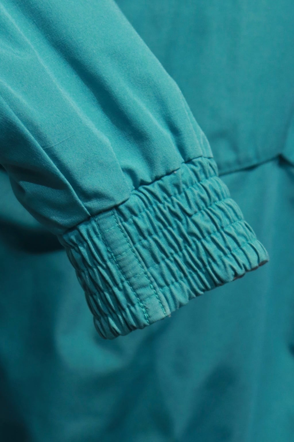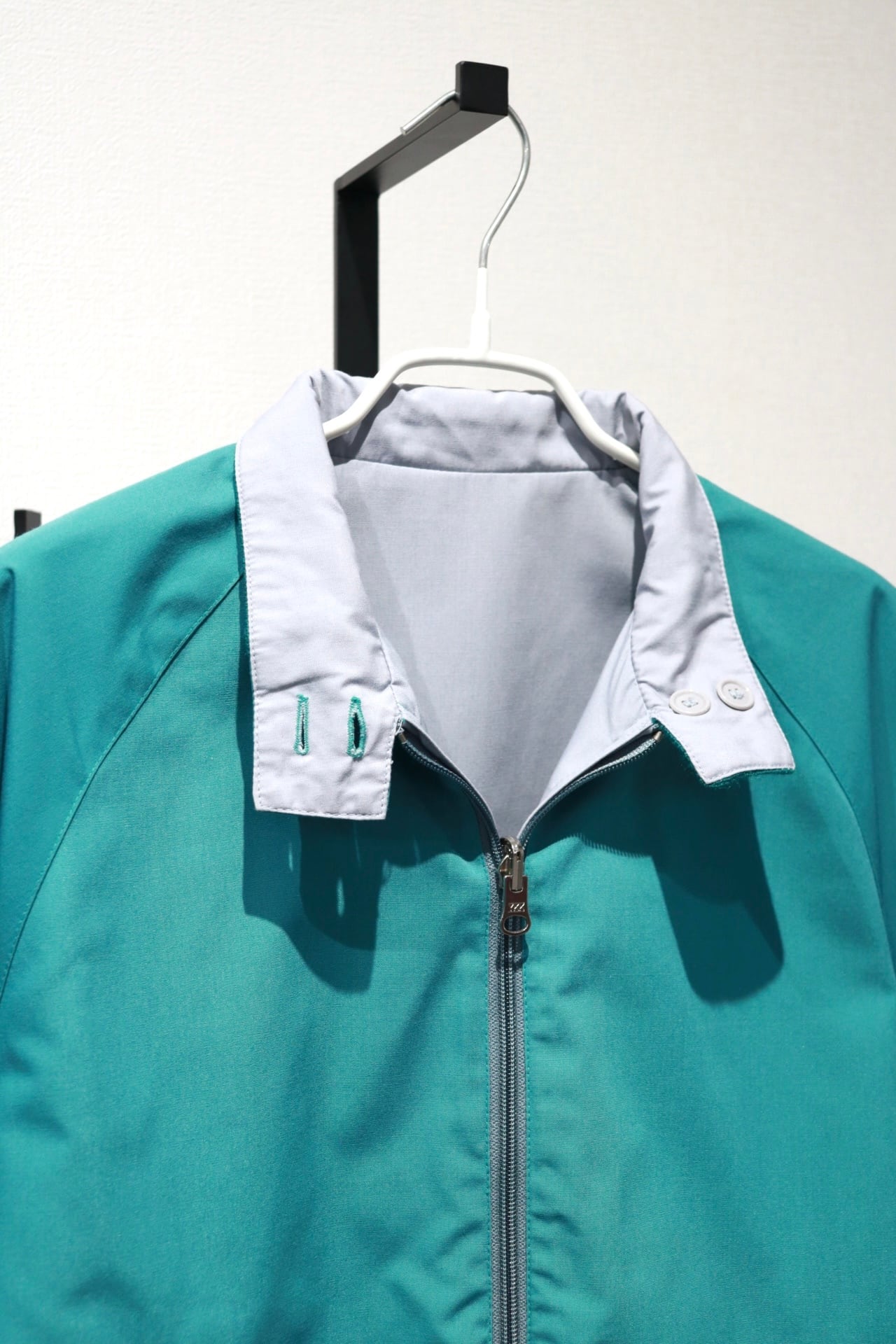 立ち襟とショート丈が特徴のハリントンジャケット。こちらは珍しいエメラルドグリーンとグレーのリバーシブル仕様です。