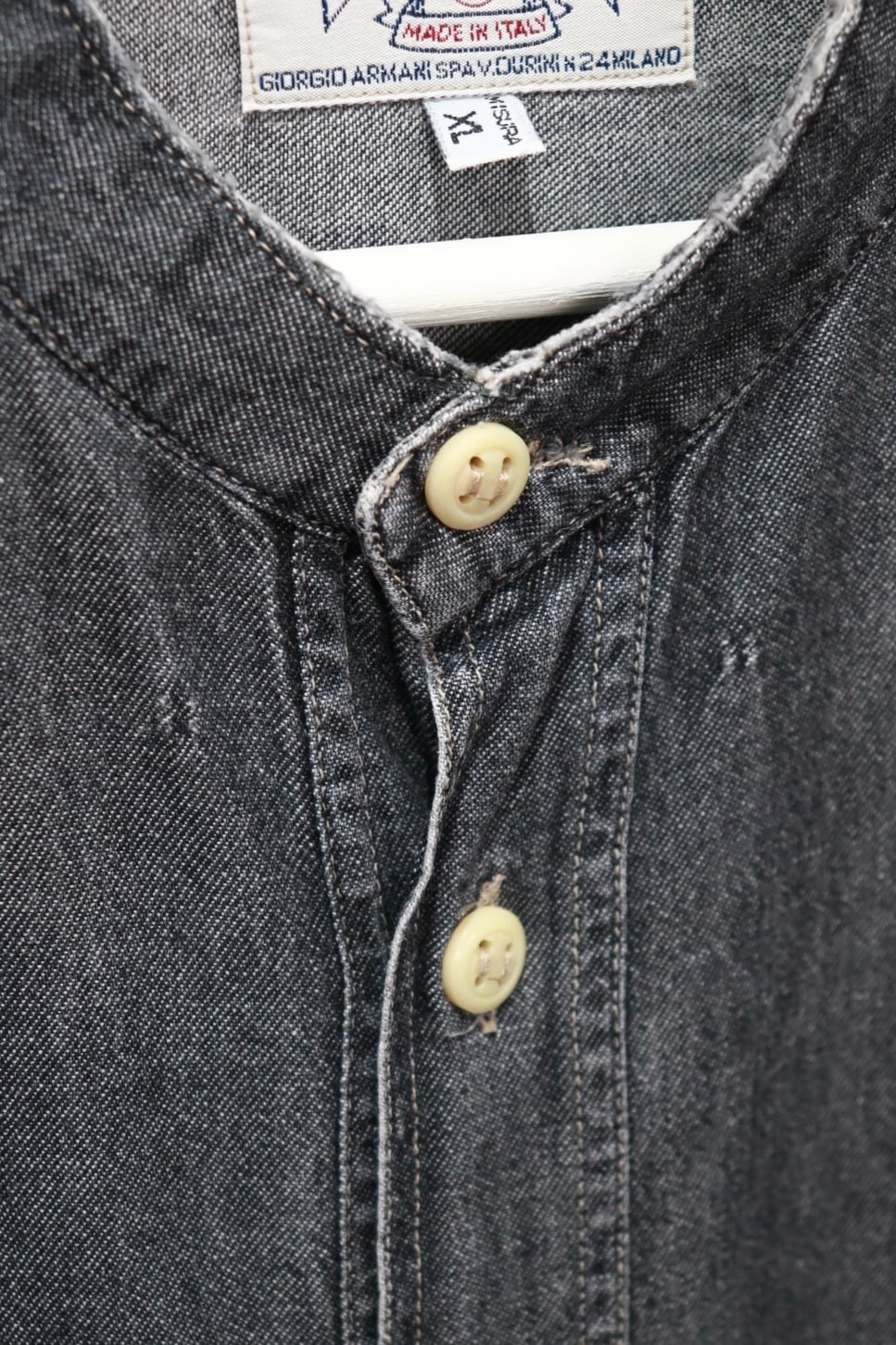 イタリア製、アルマーニ・ジーンズのデニムノーカラーシャツ。