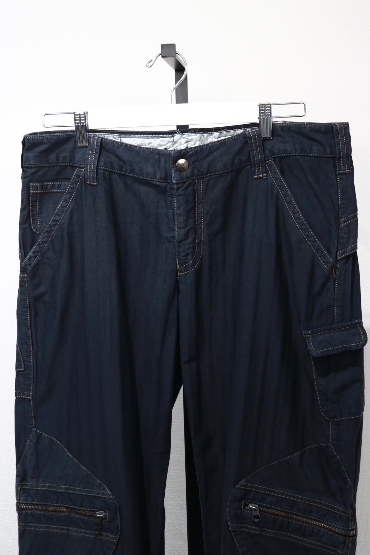 サイドやバックポケットのデザインが特徴的なカーゴパンツは、ルーマニア製のアルマーニ・ジーンズ。