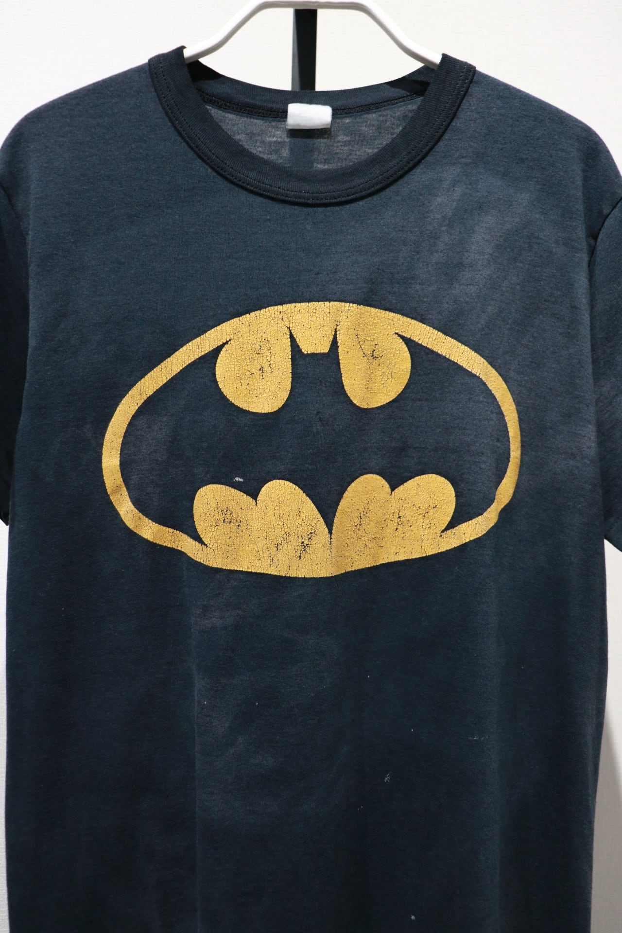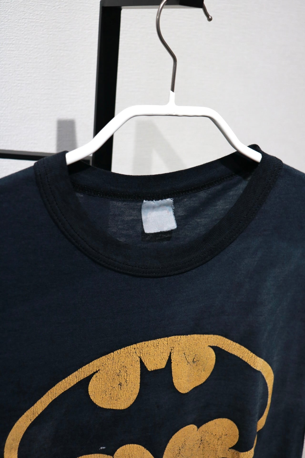 映画のロゴマークの代表とも言っていい「Batman」のプリントTシャツ。80年代のコットン・ポリのやや透け感のあるボディに、褪せた黒が雰囲気のある一枚です。